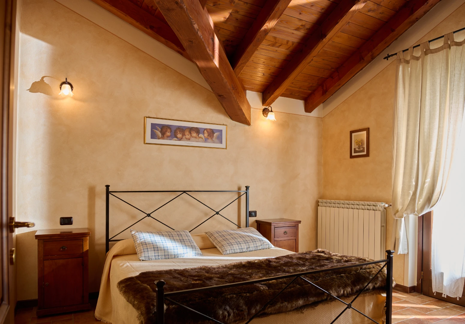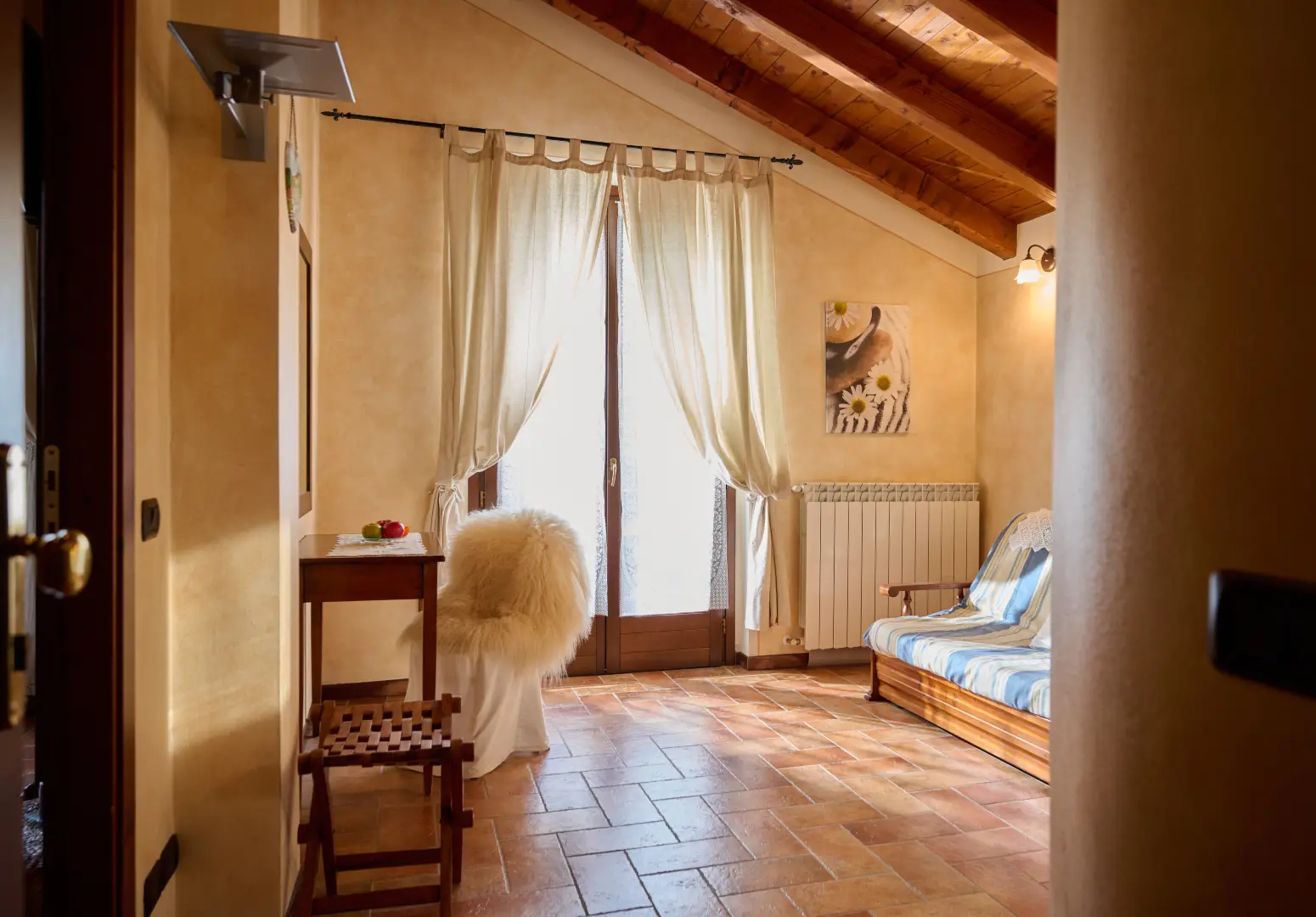 Camera spaziosa e luminosa, ristrutturata recentemente con legno caldo e profumato di larice bio spazzolato ed arredata con gusto. Dotata di balcone esterno, bagno in camera con asciugacapelli e bollitore elettrico.