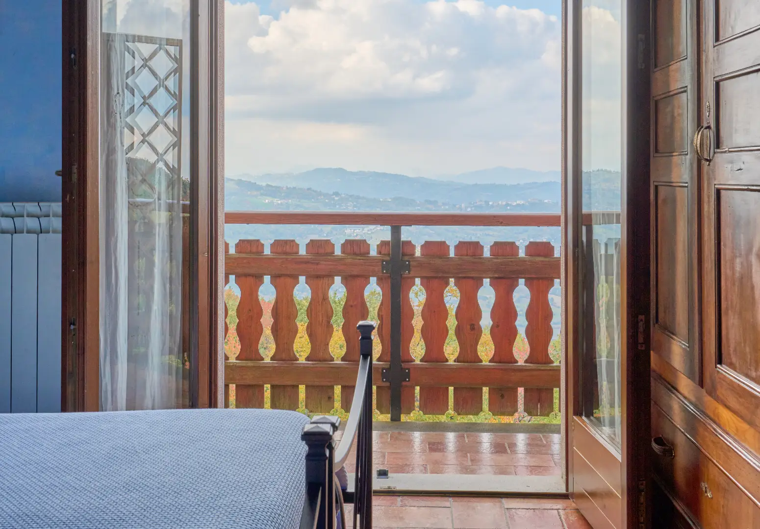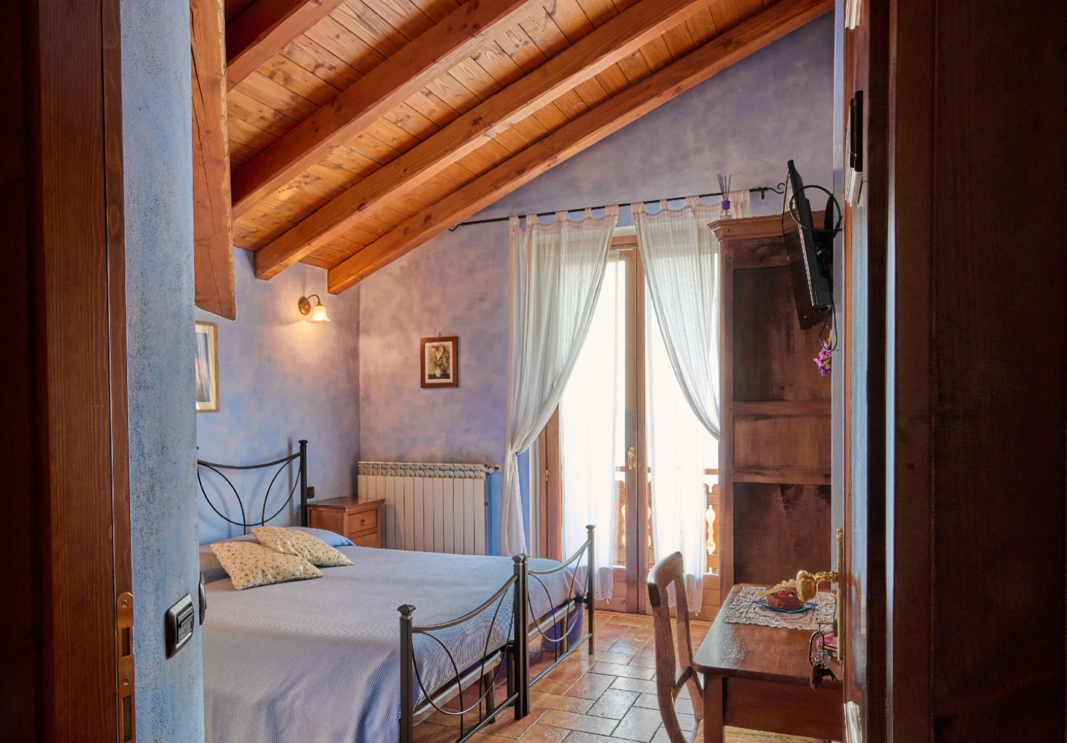 Camera spaziosa e luminosa, ristrutturata recentemente con legno caldo e profumato di larice bio spazzolato ed arredata con gusto. Dotata di balcone esterno, bagno in camera con asciugacapelli e bollitore elettrico.